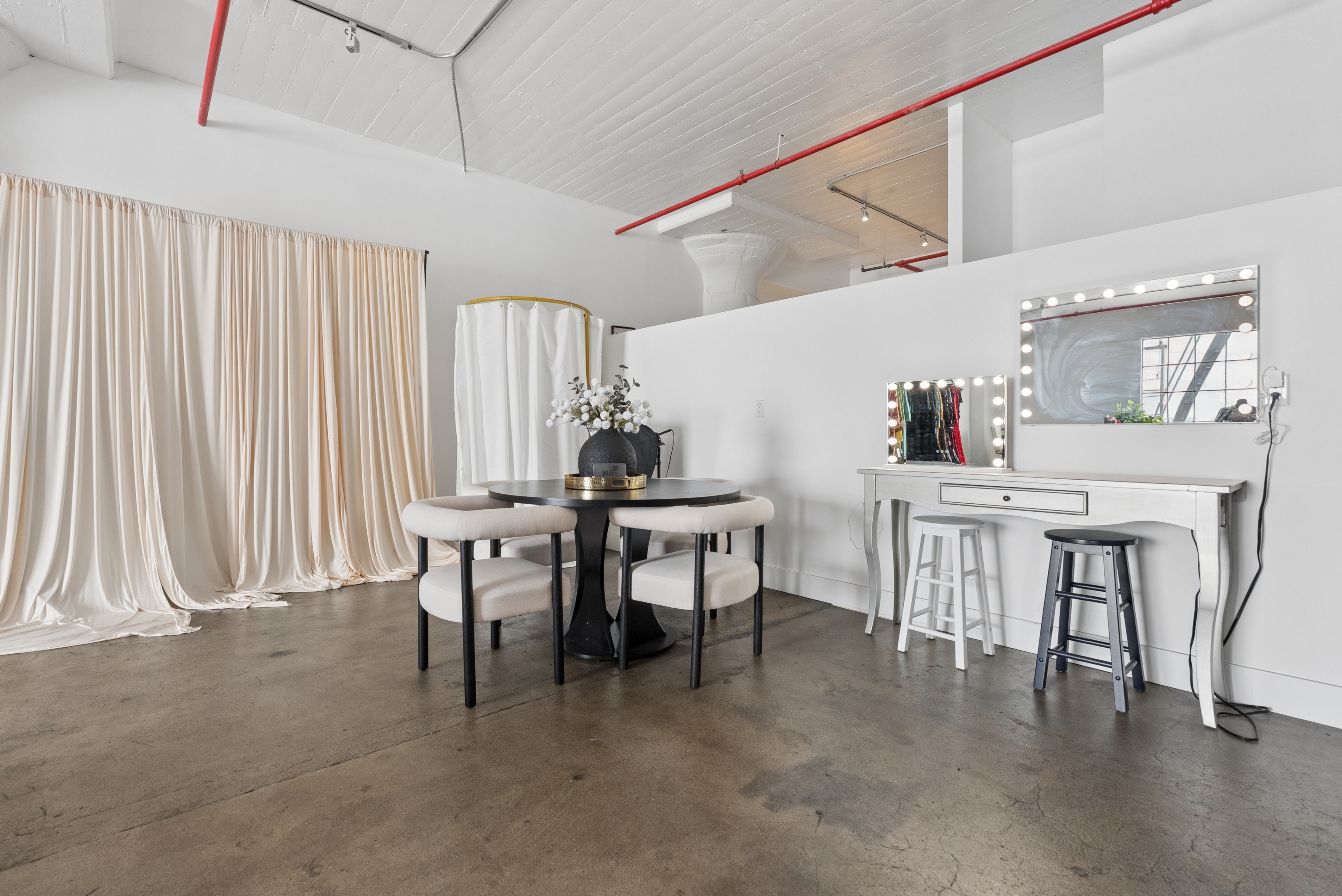 Professional makeup stations with studio-grade lighting. Perfect for pre-shoot preparation, touch-ups, and styling.